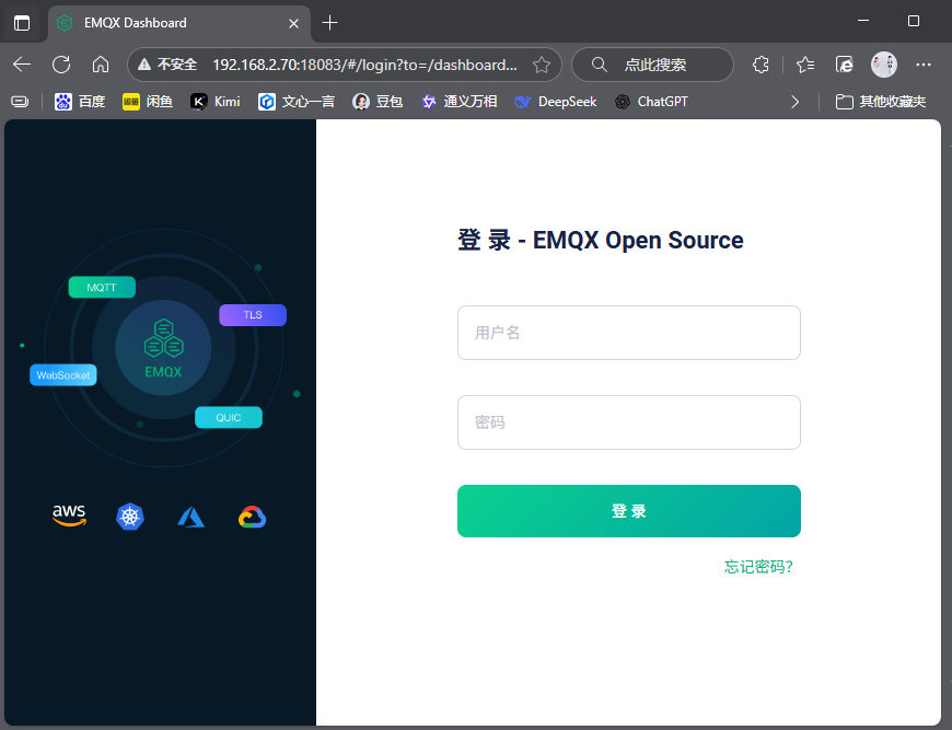 尝试登录控制台(使用本地ip加上端口18083即可,初始用户名:admin,密码:public),登陆后会要求修改密码: