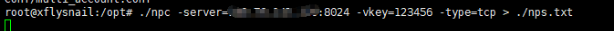 ./npc -server=服务器ip:8024 -vkey=123456 -type=tcp > ./nps.txt