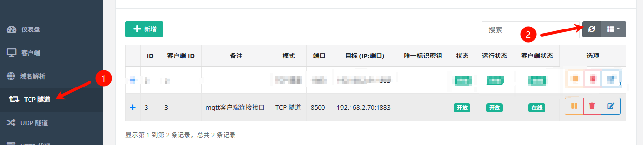 命令执行后在管理端刷新就能看到客户端状态为在线了(截图中的第一个数字3是客户端ID后面要用):