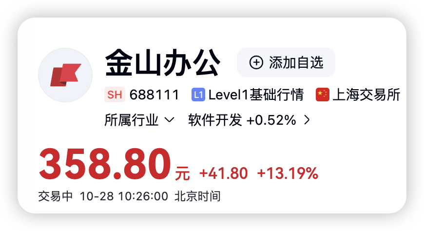 「TMT星球」注意到,财报发布后的第二天(10月28日),金山办公股价一度涨超13%。