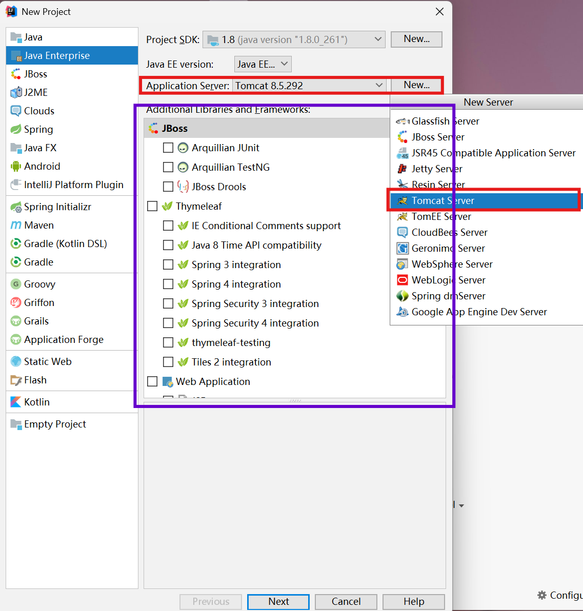 - New Server部分是可选的服务器类型,我们现在使用Tomcat