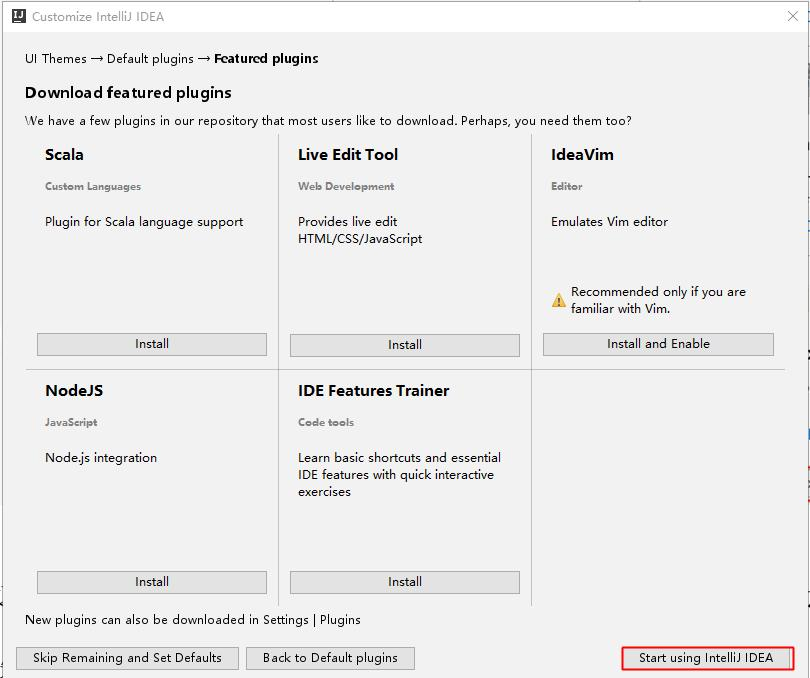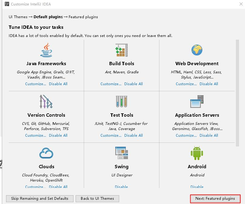 2.选择完视图后,点击 next:Default plugins 默认安装插件页面,这些都是默认安装的插件,点击 next:Featured plugins 进入插件选装页面: