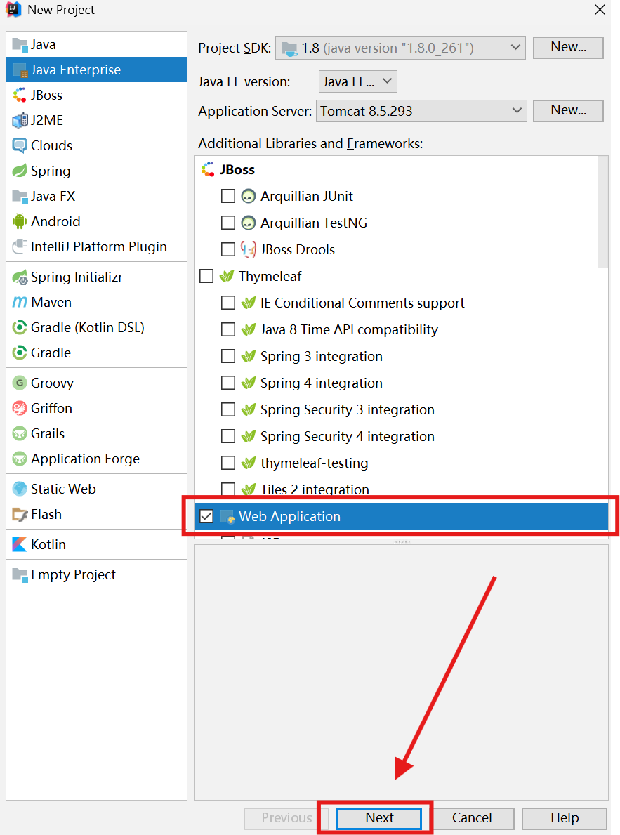 当正确选择了 Tomcat 的安装根目录,刚才的两个红色警告就会消失,从而完成 Tomcat 服务器的配置。,勾选Web Application,然后点击Next,之后的步骤和创建普通Java项目相同:
