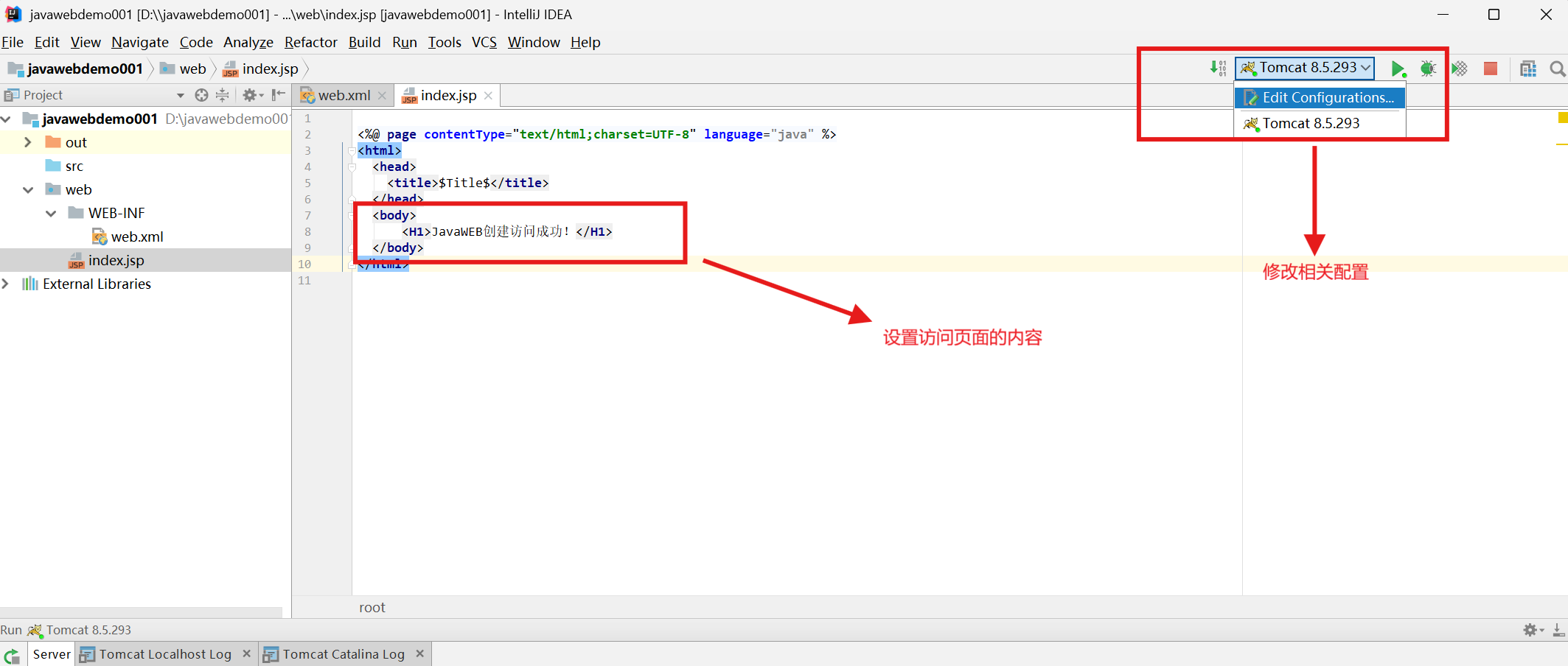 这里如果是用IDEA第一次创建javaweb项目,需要进行打包部署,详见以下文章: