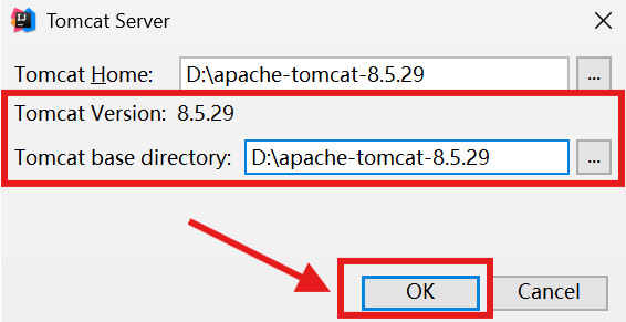 Tomcat base directory:一般可保持默认(由 IDE 自动关联 Tomcat Home 的配置),或也选择 Tomcat 安装目录即可。