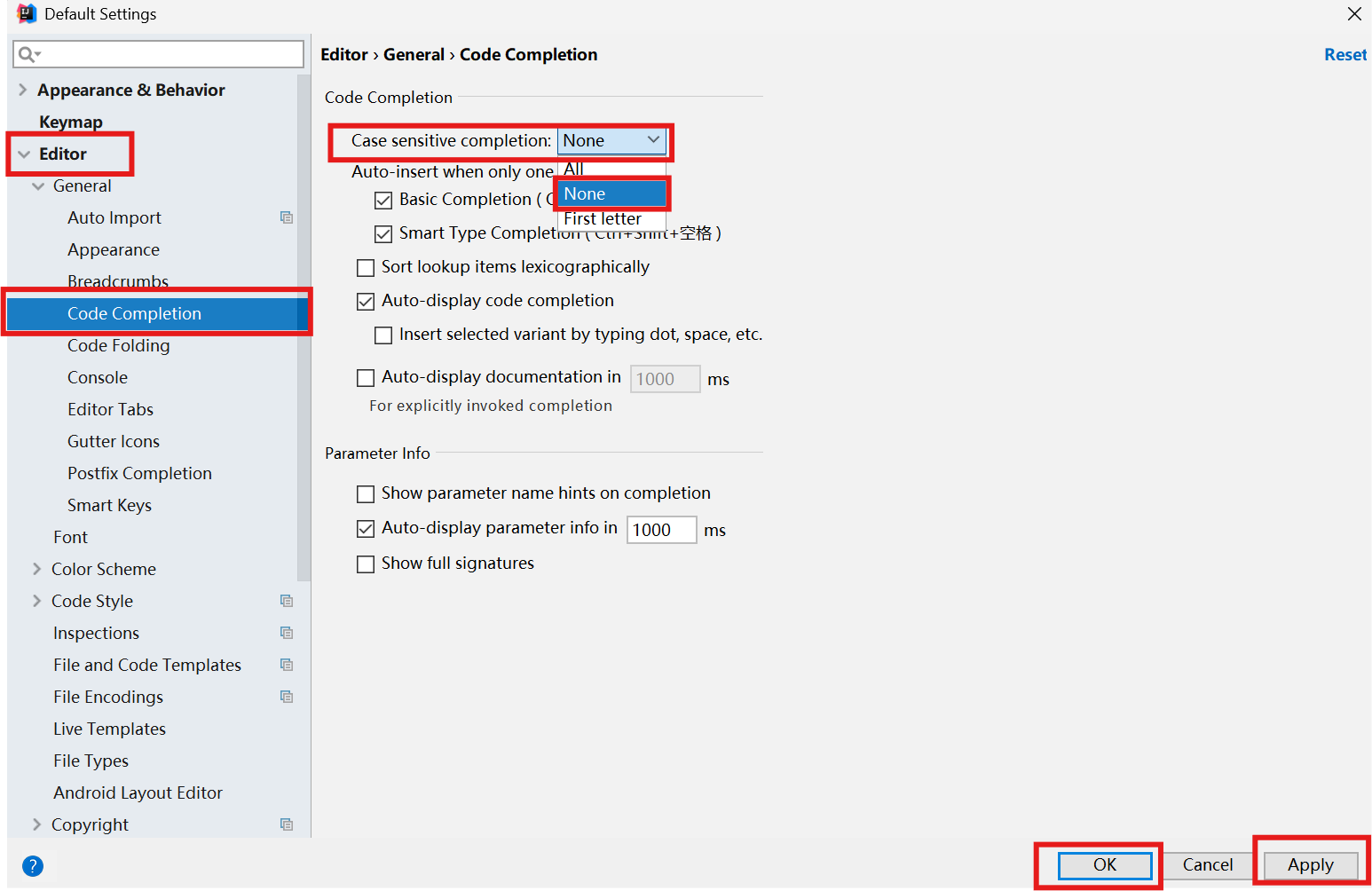Idea 的代码提示是非常强大的,方法或者属性存在大小写,咱们希望不管是大写还是小写都有提示,可以参考如下设置: