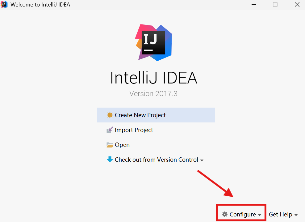 如果不关闭此选项而自动更新了idea,那么破解将会失效,需要卸载idea,然后重新安装,重新破解,非常的麻烦。在idea的启动页面(如下图),选择Configure,选择Settings进行配置: