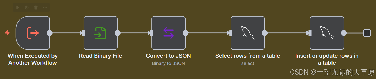 n8n 是一个非常流行的、开源模式的工作流自动化(Workflow Automation) 平台。通过可视化、低代码 的工作流节点拖拉拽进行自动化工作流和AI应用构建。它的核心目标是帮助用户将不同的应用、服务和数据源连接起来,实现任务和流程的自动化,具备丰富的连接器生态、一体化集成、快速原型设计部署和灵活的数据转换等特点。同时,n8n在 AI (人工智能) 特别是 大型语言模型 (LLM) 方面灵活集成应用能力,将 LLM 的智能操作无缝地嵌入到任何业务流程中 ,使其成为构建 AI 驱动自动化工作流的强大工具。n8n非常适合业务流程自动化、事件驱动的自动化、数据转换同步、应用集成和AI应用构建,能够将LLM 的智能 与 n8n 强大的系统集成和流程控制能力 完美结合,让我们快速创建出具备决策、理解和执行能力的端到端自动化智能化流程等。不过,由于n8n灵活可扩展性能力、强大的社区及各个各样应用连接节点支持,导致上手门槛较高,流程构建过程中需要大量的、通过代码实现的数据清洗处理等工作,这样就容易让人望而却步,不过一旦上手,其灵活性和扩展性支持,会让大家爱不释手。以下是基于n8n做的数据库单表多表的同步示例,供大家参考。