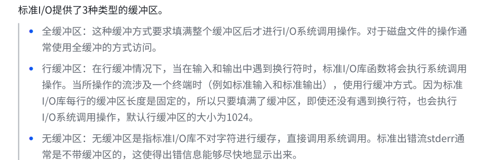 缓冲区就是一块内存的空间,分为读缓冲区和写缓冲区。缓冲区的作用就是避免大量系统调用从用户到内核,从内核到用户的转换。比如当我们想往磁盘里写的时候,如果没有缓冲区,我们会直接调系统调用把它写到磁盘里,但是这样一来磁盘的速度很慢,而且谁能往磁盘里写,只有OS,所以设计到用户到内核的切换,这样频繁的切换消耗资源,会变的非常缓慢。