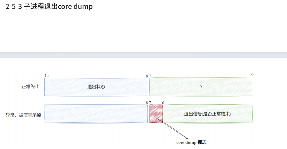 子进程退出core dump标准,进程终止的时候一个是正常终止,一个是异常,被信号杀掉。