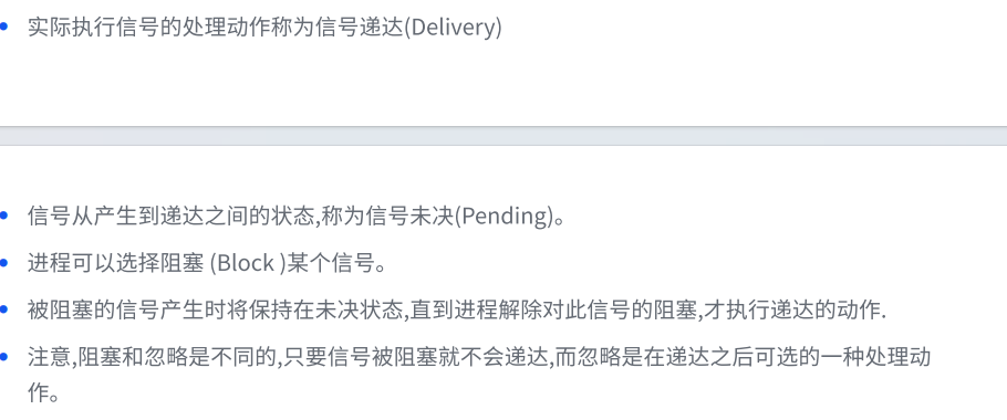 这里重点介绍一个概念,是阻塞和忽略,初学应该会有疑惑,这不是一样吗?阻塞了不就是忽略吗?其实不是的,阻塞就不会递达,而忽略是信号递达之后的操作是忽略。