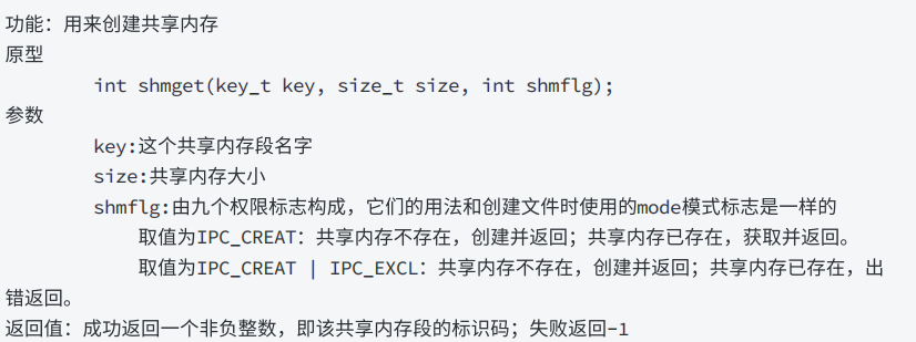 共享内存要怎么搞呢?首先需要再物理内存搞一块空间出来,然后再把进程的虚拟地址映射到这个物理内存,就好了,然后如果想的话也可以让当前共享内存段从当前进程脱离。那如何往共享内存里进行读和写呢?也要提供对应的函数来。