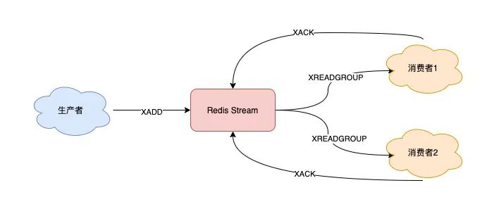 首先,Stream 通过 XADD 和 XREAD 完成最简单的生产、消费模型: