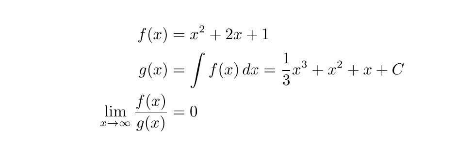 \lim_{x \to \infty} \frac{f(x)}{g(x)} &= 0