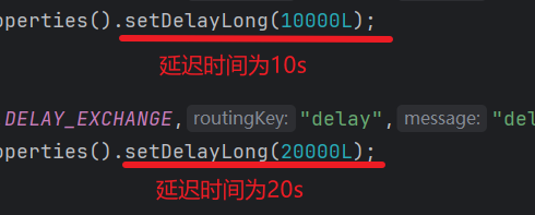 message ->{message.getMessageProperties().setDelayLong(20000L);