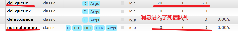 发送消息到普通队列,但是接收消息绑定的是死信队列
