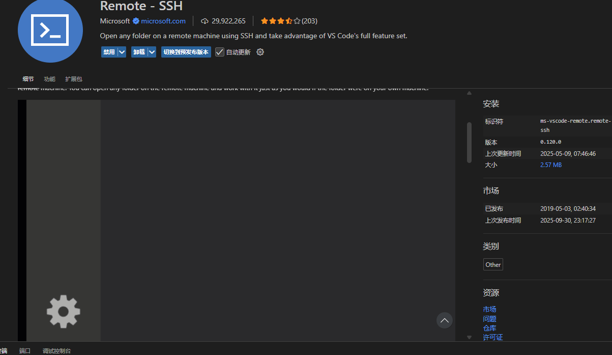 - 在 VS Code 扩展市场中搜索"Remote-SSH"(Microsoft 发布)并安装。