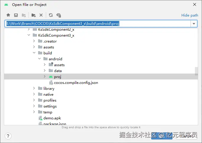 先通过快捷打开项目路径按钮,找到我们导出的项目。