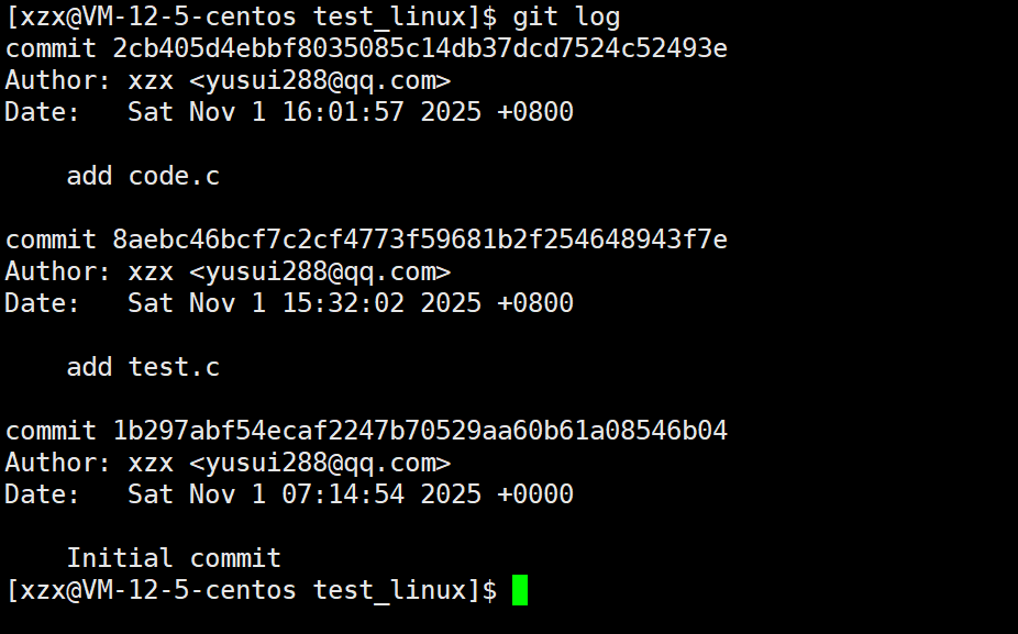 作用 :查看提交历史。展示当前分支的提交记录,包括每个提交的哈希值(版本号)、作者、提交时间、提交说明等,用于回溯历史改动。按 q 键退出 git log 的浏览界面。