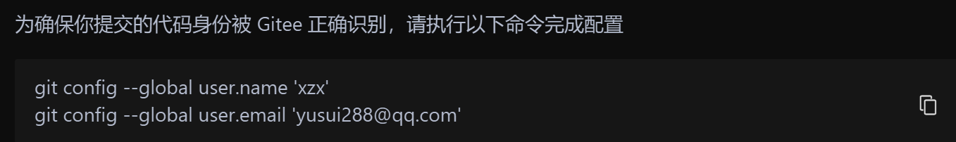 首次使用git时,为了确保提交的代码身份被 Gitee 正确识别,请执行以下命令完成配置