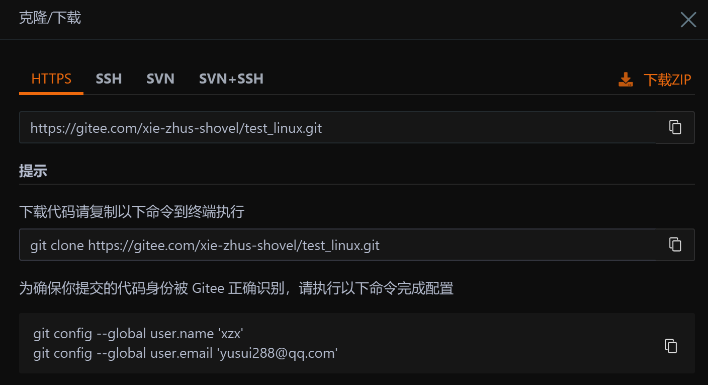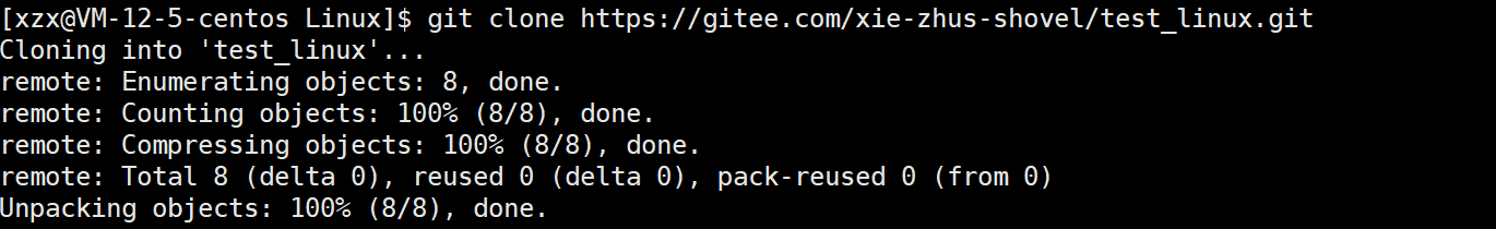 git clone https://gitee.com/xie-zhus-shovel/test_linux.git