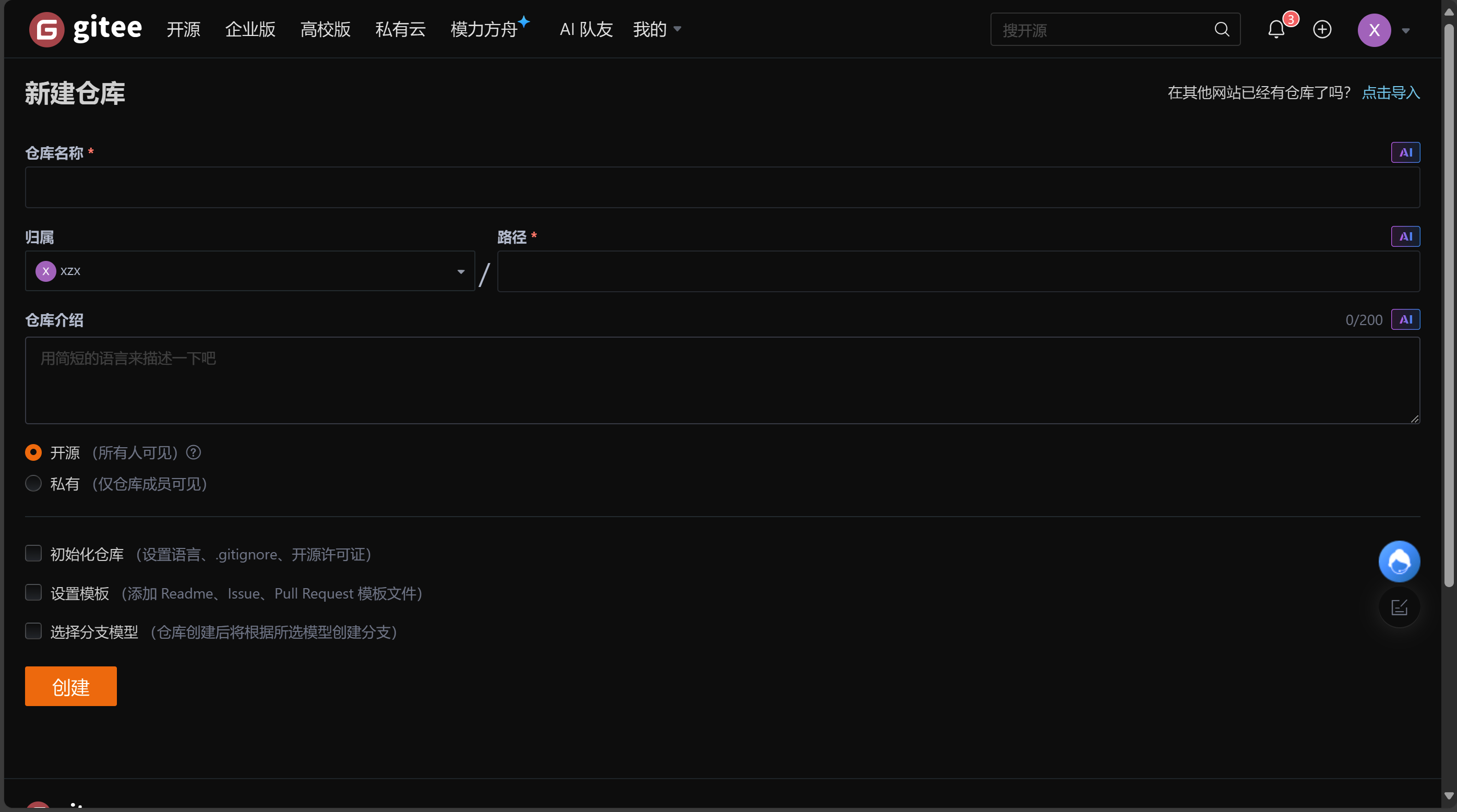 - [1.4 在Gitee上创建项目](#1.4 在Gitee上创建项目)