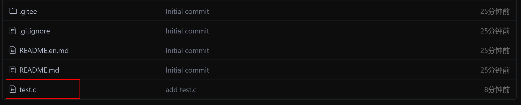 git commit之后,我们已经将文件在本地仓库被管理起来了,但是这些文件还没有同步到远端仓库,所以我们在gitee上还是无法看到这些新增的文件。
