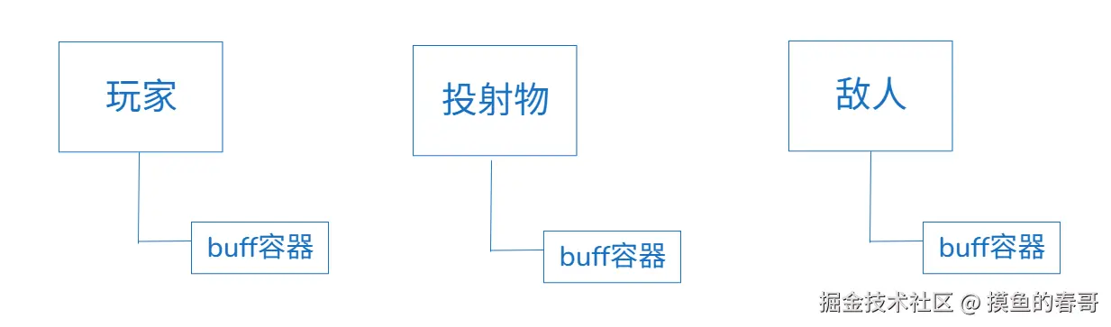给 玩家、投射物、敌人 都绑定一个名为 buff容器 的节点。