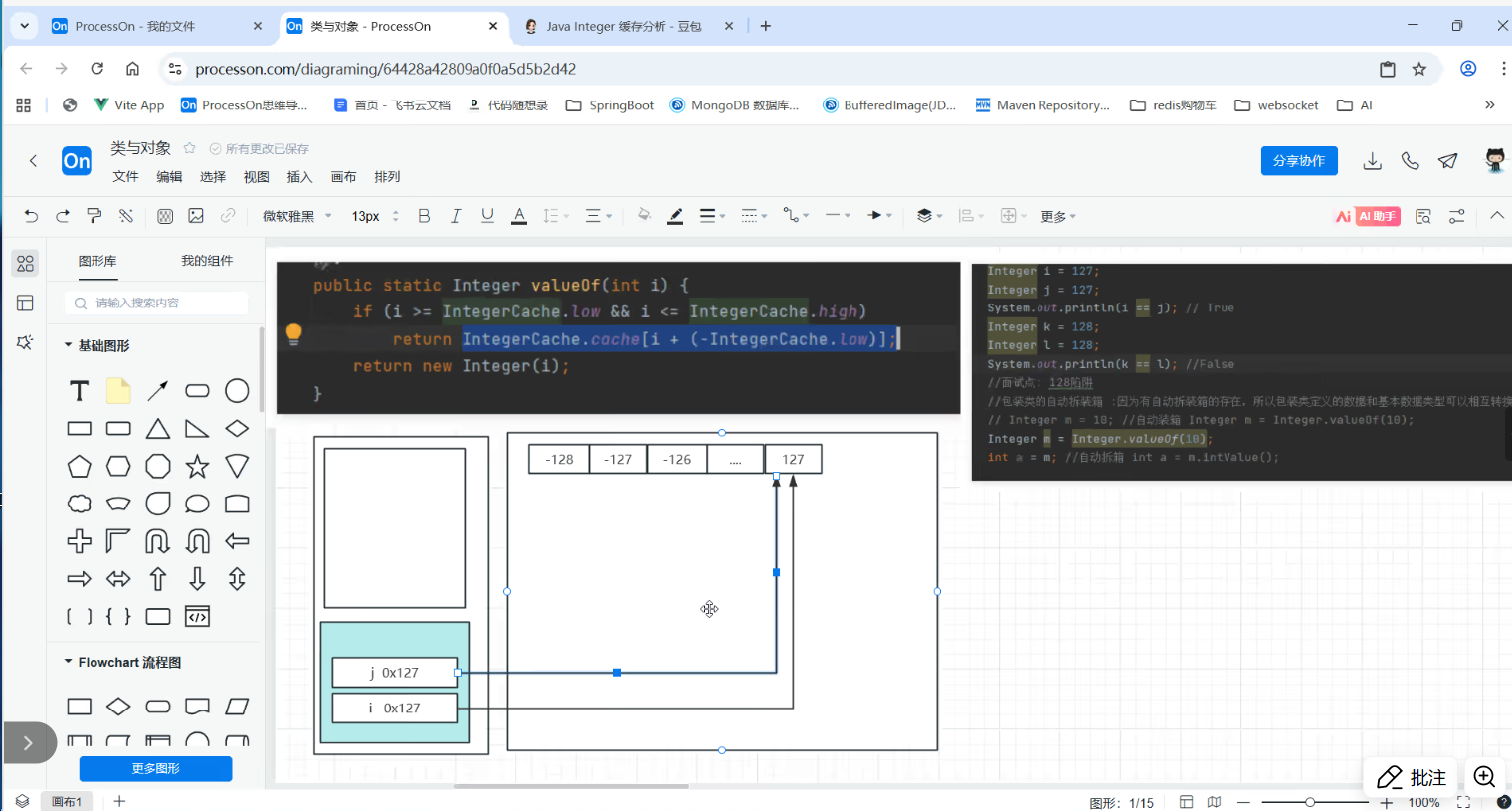 使用Integer定义的数据会进行自动装箱,自动装箱调用valueOf()方法,该方法会判断我们的入参是否在-128~127之间,如果在这个之间则会返回一个已经存在的对象的地址(该对象在Cache数组当中,Cache数组是一个从-128~127的数组),不会重新创建对象,否则会重新创建对象。