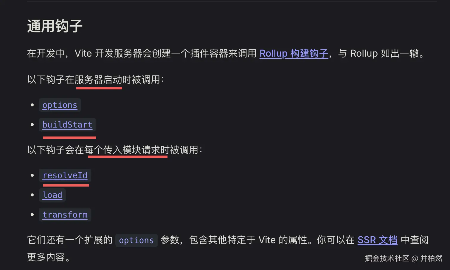 当然我们也同样在 vite 的插件文档中找到相关钩子的说明: