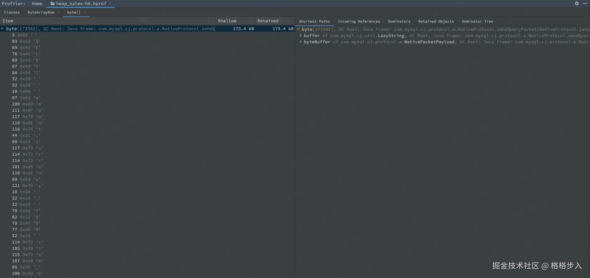 可以看到 byte[] 和 byte[][] 数据是 MySQL 里的结果数据: