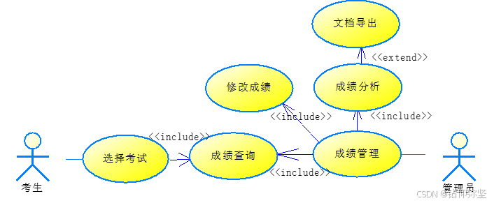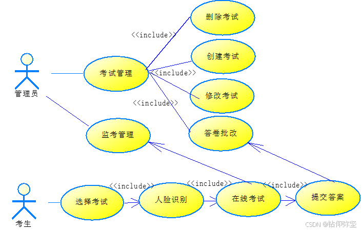 本节从用户角度分析在线考试系统的功能需求。用户分为考生和管理员。