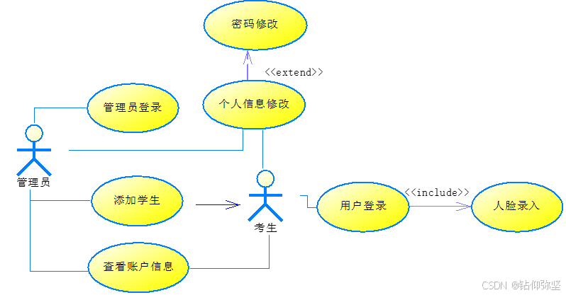 - 考生管理:包括考生的登录、人脸录入、个人信息维护和成绩查询等功能。