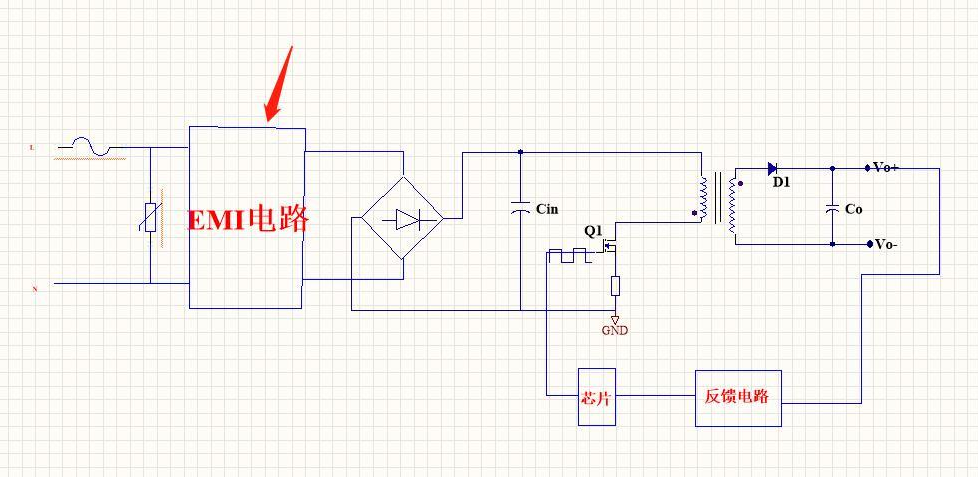所以在电源中,我们必须要加入一个 EMI 电路 当然了,EMI不是说加了这个电路就可以全部解决,内部还有很多地方是需要注意的这个东西。