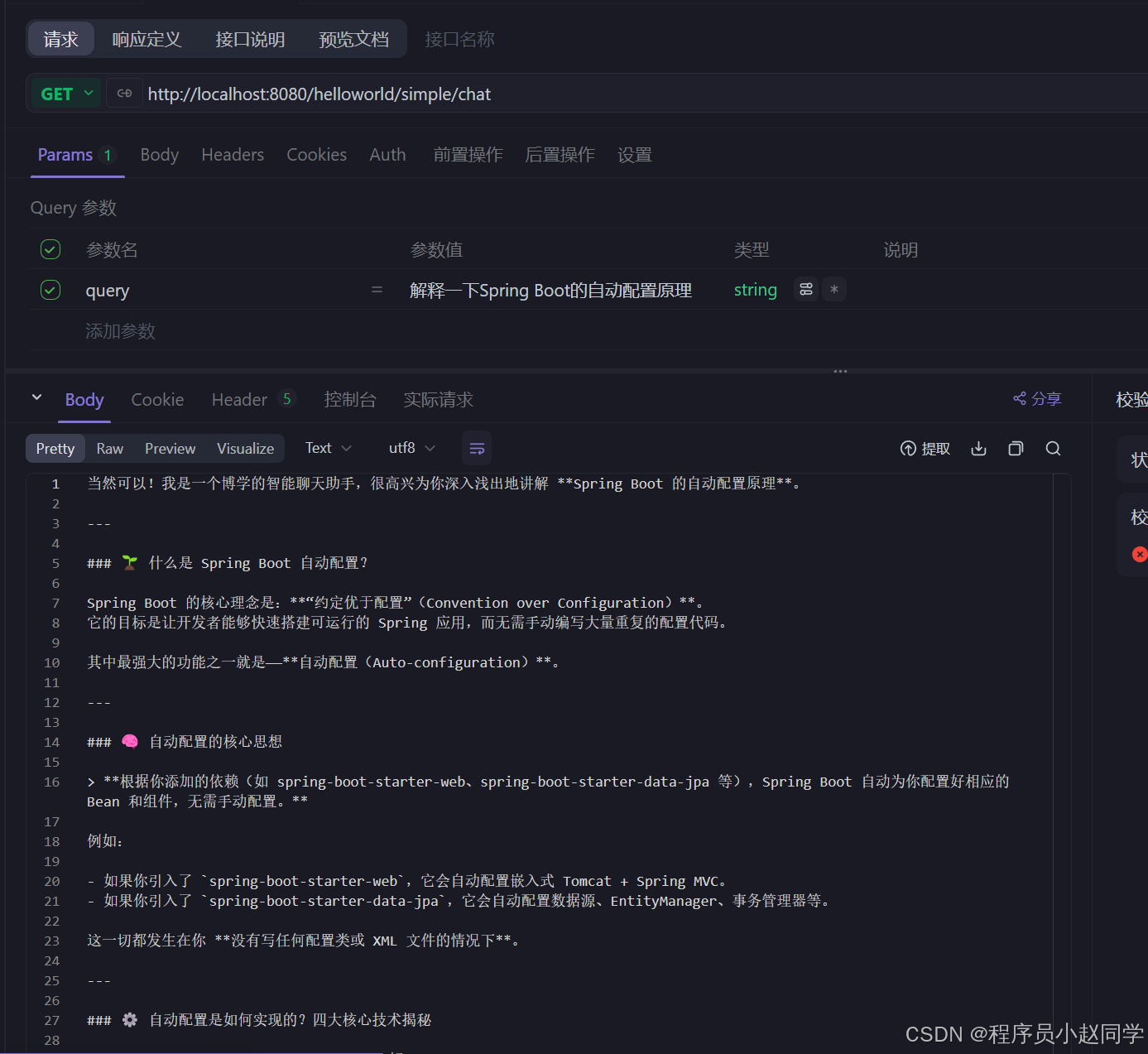 http://localhost:8080/helloworld/simple/chat?query=解释一下Spring Boot的自动配置原理