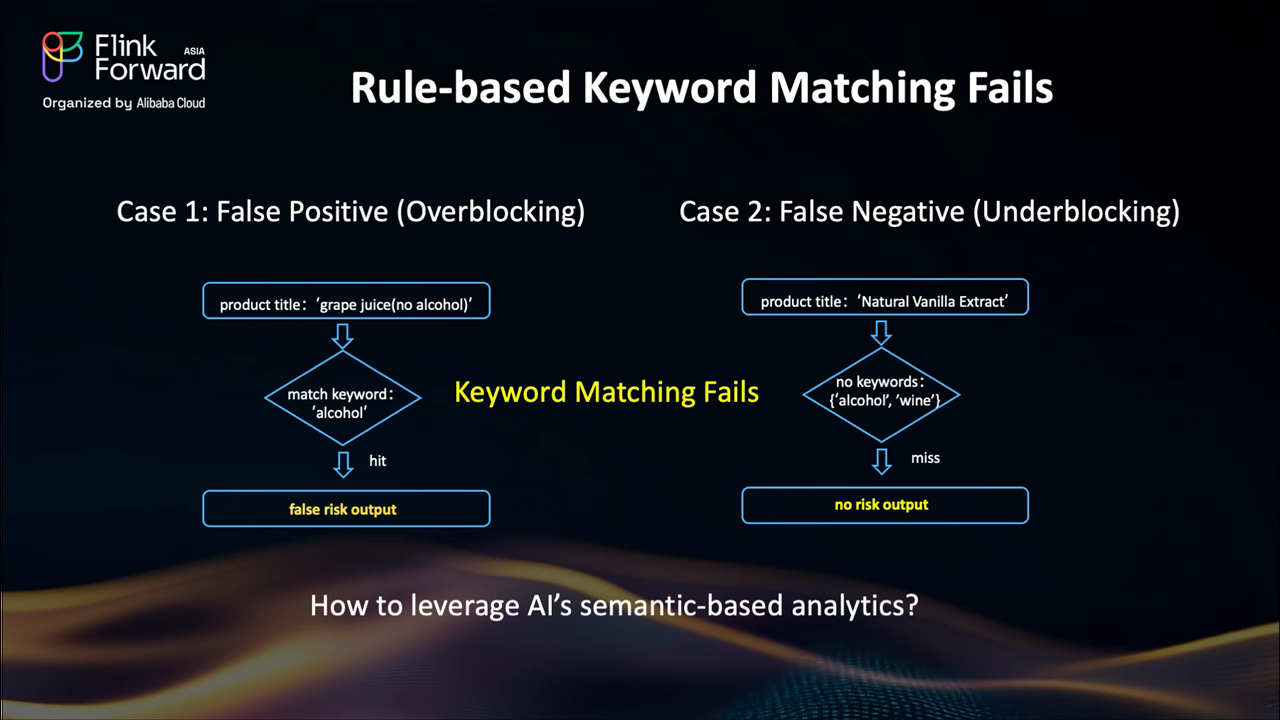 想象一个标题为"葡萄汁(无酒精)"的产品。关键词"酒精"触发了规则,系统将其标记为风险。但它明确说了"无酒精"!这是一个误报------我们阻拦了一个安全的产品,浪费了人工审核时间,并可能导致客户不满。