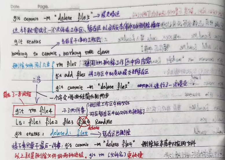 以上就是文件删除的两种流程,**git rm [文件名]**更快捷。