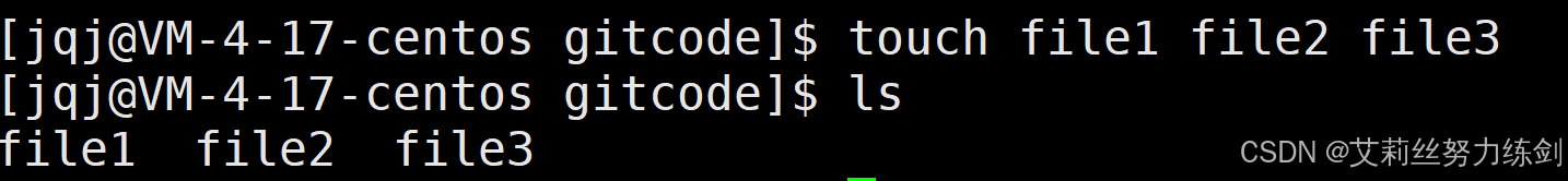 [jqj@VM-4-17-centos gitcode]$ touch file1 file2 file3