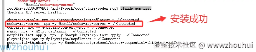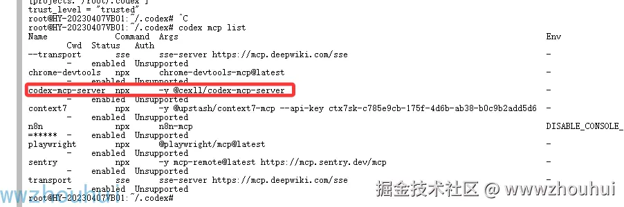 我们也可以使用下面命令检查 是否安装成功codex mcp list