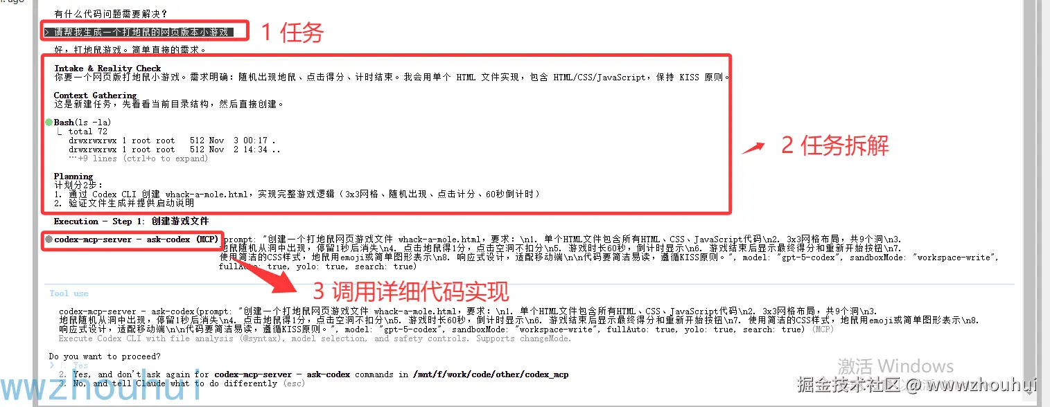 通过上面截图我们发现claude code 把任务进行拆解。编写代码部分交给codex-mcp-server 来实现 codex编程