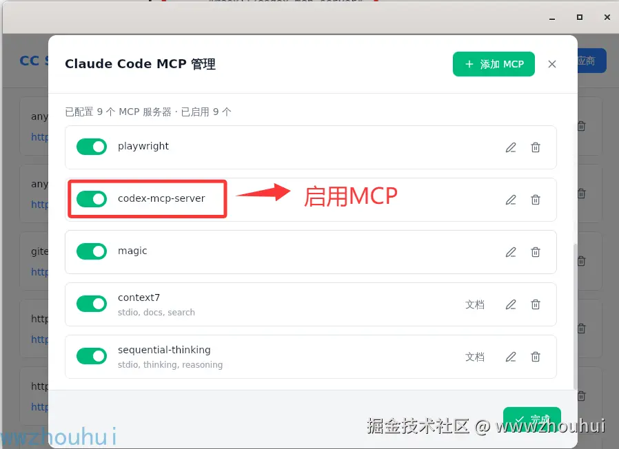 在cc-switch 选择 codex然后点击 MCP 弹出MCP 设置