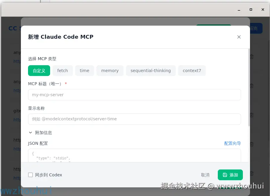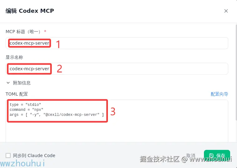点击保存完成设置。在上图中还有一个同步到 codex,我们也可以勾选它,这样保存后codex里面MCP 也就一并设置好了。