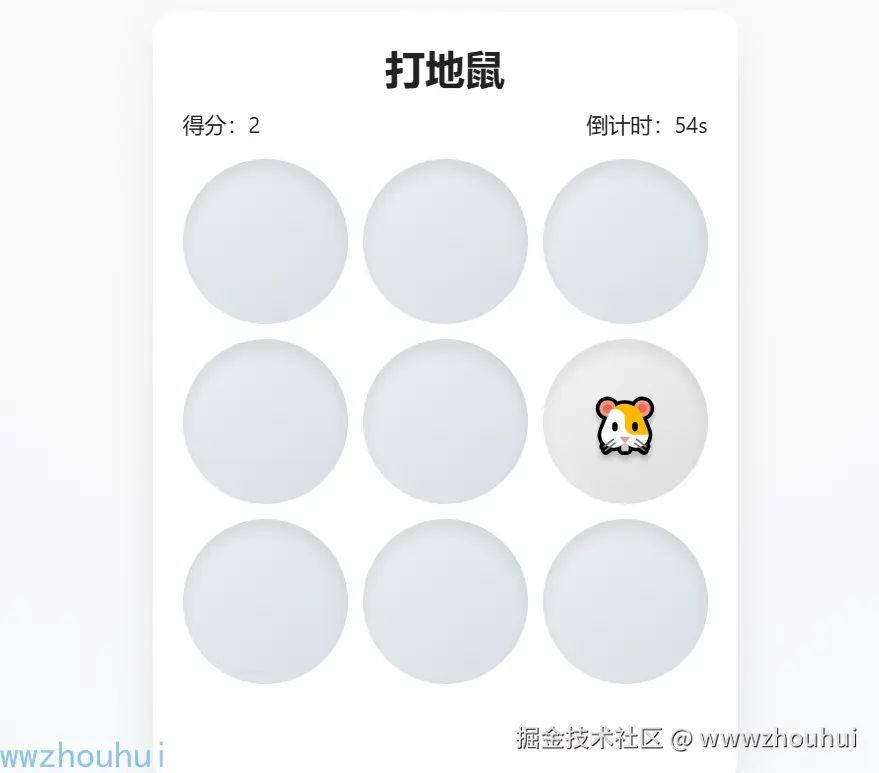 一个打地鼠的网页小游戏就制作完成了。完美实现了2个工具协同工作。