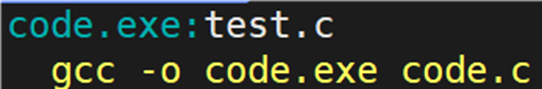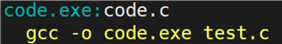 如果想要将 code.c 文件编译成 test.exe ,像上面这样写是否有问题。查看 make 指令解析的结果: