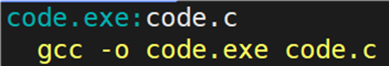 make 命令会解析 makefile 文件中的依赖关系和依赖方法,第一行 code.exe:code.c ,code.exe 的形成依赖 code.c,这种关系叫做依赖关系。第二行 gcc -o code.exe code.c 叫做依赖方法。Makefile 中重点包含的依赖关系和依赖方法。