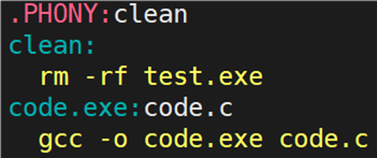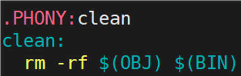 Makefile 不仅需要可以生成可执行文件的功能,也需要可以清理可执行文件的功能,所以需要清理,代码如下图所示: