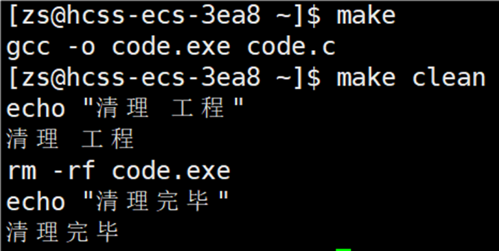 会显示当前的 code.exe 已经是最新,如果想要 make 指令能够执行,可以输入 make clean,这样就可以再次执行 make 指令。
