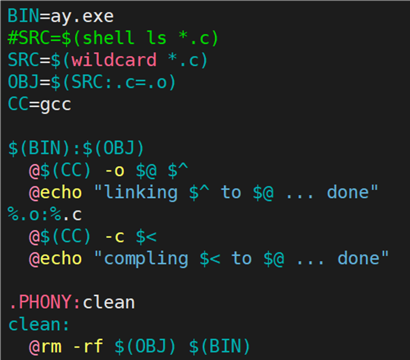 最终我们实现的 makefile 如下图所示: