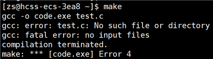gcc code.o -o code.exe 依赖文件 code.o 当前路径下不存在,故依赖方法不执行,出栈