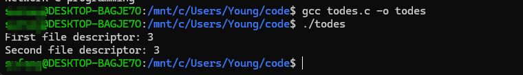 第14行和第17行输出的文件描述符值相同,证明我们调用fileno函数正确转换了文件描述符。